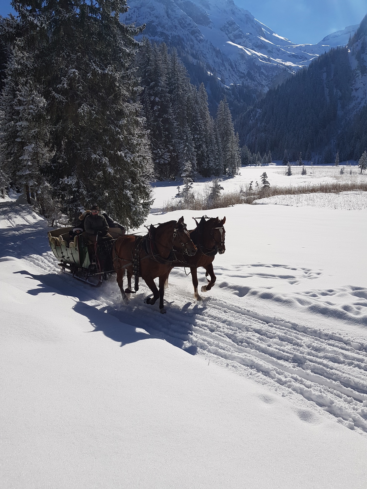 - Bei der Pferdeschlittenfahrt oder dem Spaziergang: Im gastfreundlichen Restaurant Alpenland
